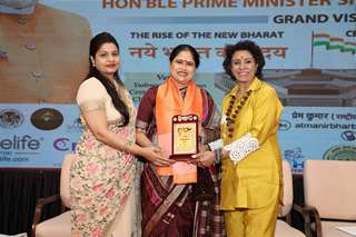 She mesmerized all the participants in the event by her inspiring speech in which she named all women of the Nation who have paved their names in the History of India  by sheer hard work and dedication this kept all the participants spellbound as they realized that the INDIAN WOMEN has not spared a single field where she has not carved her achievement. She appreciated the fact that it is difficult to execute such a challenging intellectual event in any city so amicably. She said, “I Bless my brother, Prem Kumar for his herculian task for organizing this event in support of our Prime Minister Shri Narendra Modiji in surging INDIA to the Worlds Strongest Economy”.  She recollected their Event organized at Mahalakshami Race Course , few years ago which featured Lata Mangeshkar and the  than  Chief Minister of Gujarat Shri Narendra Modiji where all had visualized that Narendra Modiji would be “the future of INDIA ” who will lead the party to the “Mahasatta ” and today it is the undisputed fact, we are already there.