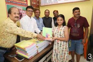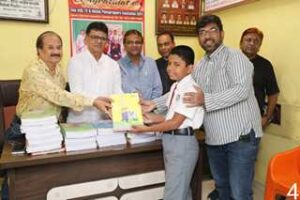 Free notebooks were distributed to the children of active members of the association in the ceremony. The organization’s president Mr. Ramakant Munde, general secretary Mr. Atul Rajkule, treasurer Mr. Satish Ghusale, co-secretary Ashok Kanojia, founder committee member Mr. Firoz Hashmi, committee members Mr. Shyam Salvekar, Mr. Vinayak Vetkar, Mr. Devendra Sarkar and members Kishor Raibhan, Ramhari Sonawane were present with their children. The enthusiastic program was concluded by secretary Atul Rajkule honouring Mr. Ashpak Khopekar by presenting him a shawl and a coconut.